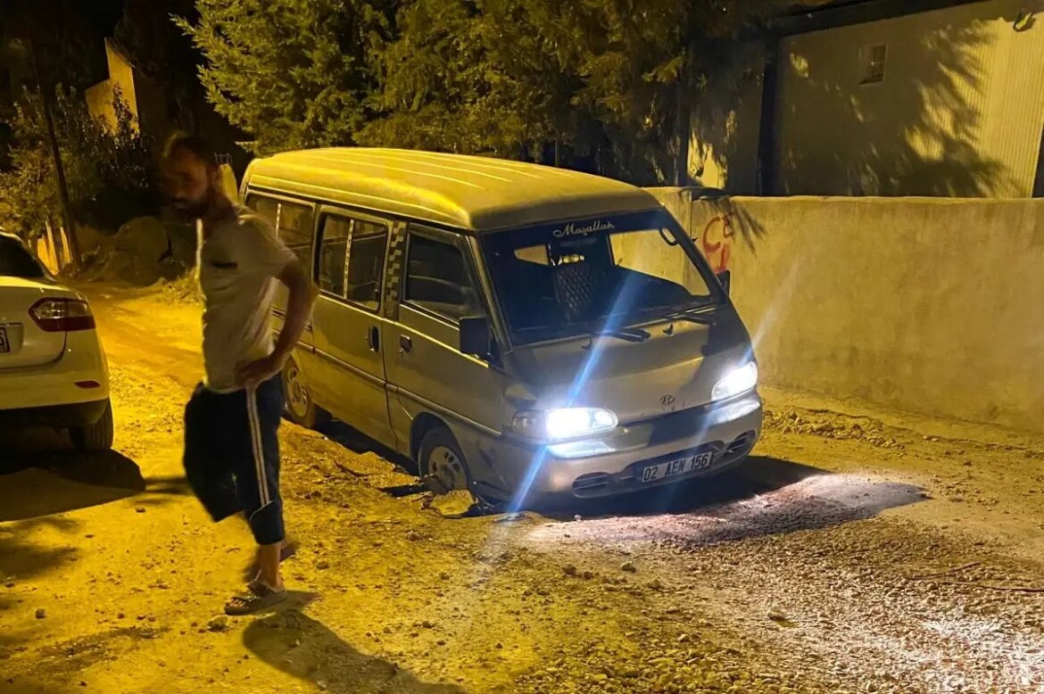 Adıyaman’da, bir araç tam doldurulmayan alt yapı çukuruna girerek mahsur kaldı.