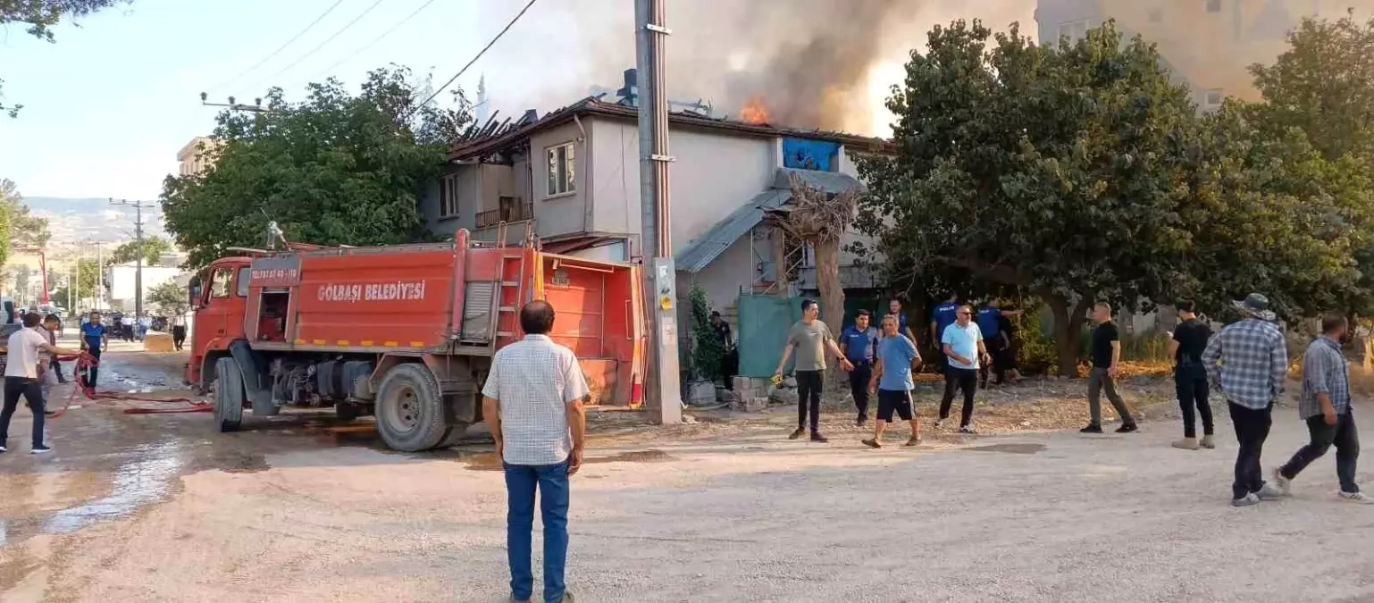 Adıyaman’ın Gölbaşı ilçesinde iki katlı bir meskende çıkan yangın paniğe neden oldu.